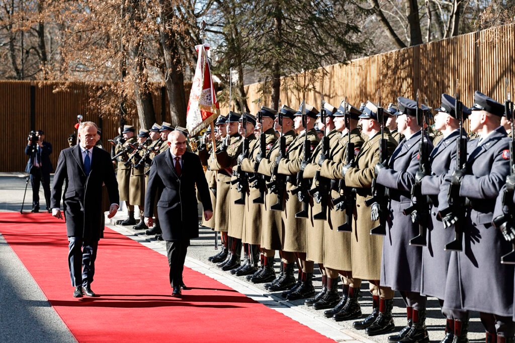 Այցի երկրորդ օրը մեկնարկել է Հայաստանի Հանրապետության վարչապետ Նիկոլ Փաշինյանի և Լեհաստանի Հանրապետության վարչապետ Դոնալդ Տուսկի հանդիպմամբ։ Նախ տեղի է ունեցել դիմավորման պաշտոնական արարողությունը, որին հաջորդել է երկու երկրների ղեկավարների առանձնազրույցը։