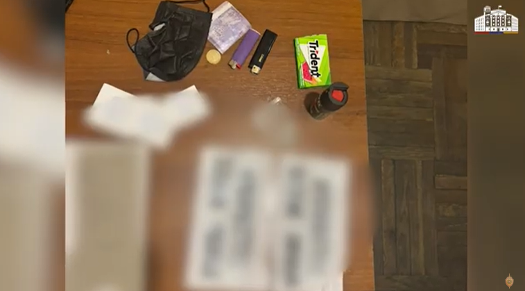 Նրա խուզարկությամբ հայտնաբերվել է մարիխուանա տեսակի թմրամիջոցի նմանվող զանգված, բժշկական դիմակ, արցունքաբեր գազ և «Տելեգրամյան» ալիքի հասցեով թուղթ։