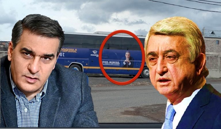 Լրագրող Գևորգ Թոսունյանը ֆեյսբուքյան իր էջում անդրադարձել է Սերժ Սարգսյանի տան մոտ կայանած Արման Թաթոյանի ավտոբուսին։