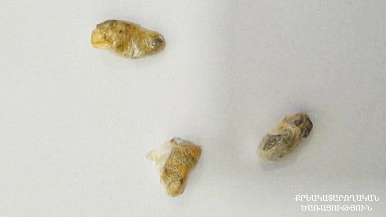 Զննության արդյունքում շաուրմաների միջից ծառայողները հայտնաբերել են 3 փաթեթ, որոնցում առկա են եղել մարիխուանա տեսակի թմրամիջոցին նմանվող, ընդհանուր 6 գրամ քաշով, դեղնականաչավուն զանգվածներ։