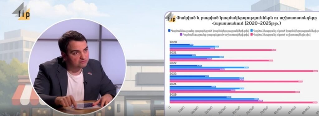 Հաղորդավարի դիտարկմանը, որ փակվելուն զուգահեռ նաև նոր կազմակերպություններ են բացվում, Ն․ Կարապետյանն արձագանքել է՝ իր ներկայացրած թվերը վերաբերում են հենց բալանսին՝ փակվող և բացվող ընկերությունների ու աշխատատեղերի տարբերությանը։